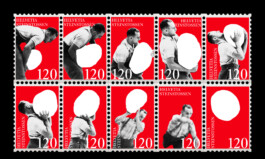 Design and production of a sheet of ten stamps dedicated to the traditional Swiss sport of Steinstossen. The project was inspired by the famous Unspunnen stone, used in stone throwing competitions, which was stolen and remains missing to this day.